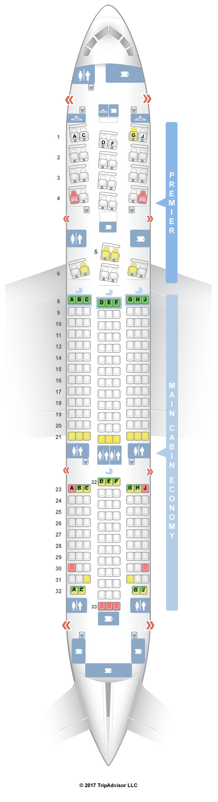 The Aeromexico Boeing 787-8 Dreamliner flies in a two class configuration with 6 abreast seating in Clase Premier Business Class and 9 abreast seating in Main Cabin Economy Class. Seating in Main Cabin is further divided into AM Plus, offering additional legroom plus priority check-in, boarding, and baggage handling (for an additional fee), Preferred, offering seating near the front of the aircraft or Exit Rows (for an additional fee), and standard.