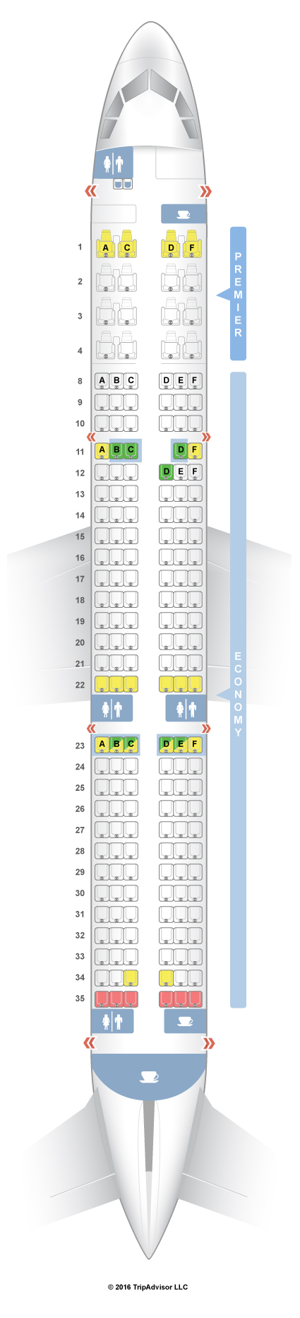 This Airbus A321 features 183 seats in a 2-class configuration. Business Class is rows 1-3 and Economy Class is rows 4-39. There are Space+ seats in rows 11 and 23 that offer additional legroom in Economy Class. Space+ seats may be selected for an additional fee at check-in.