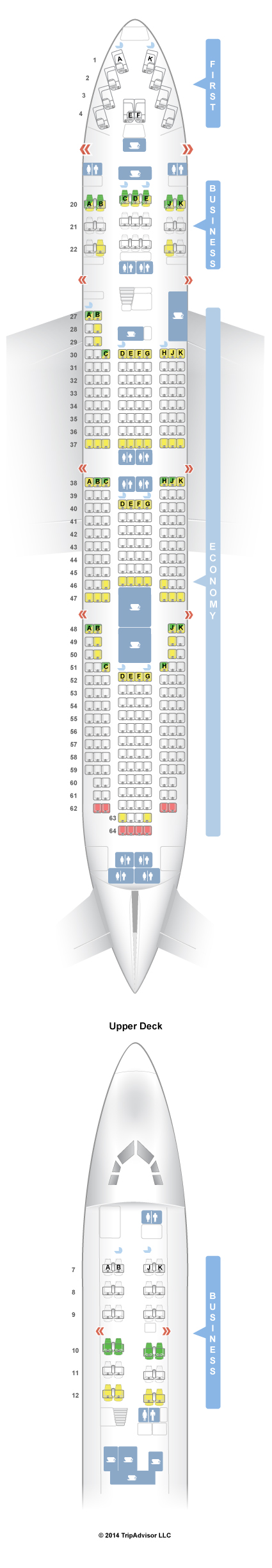 This version of Asiana's 747-400 is outfit in a three cabin configuration with First Class, Business class, and Travel class seating, totaling a capacity of 359 passengers. The 747-400 is optimized for mid-to-long haul routes.