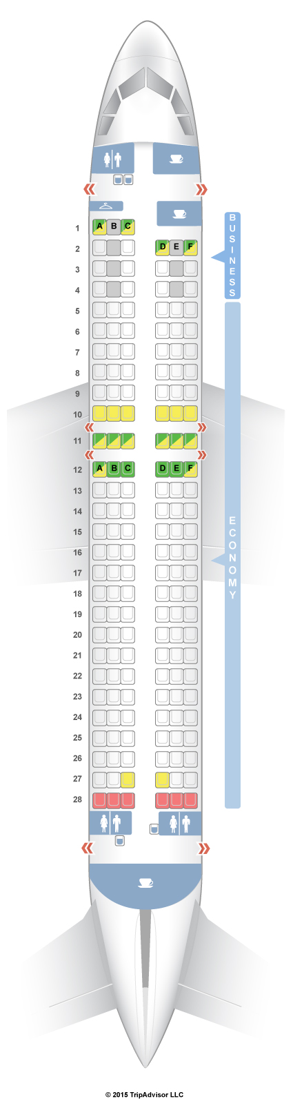 This aircraft is equipped with all Economy Class seats. Depending on demand, these seats can be converted to Business Class by reserving the middle seat for exta space.