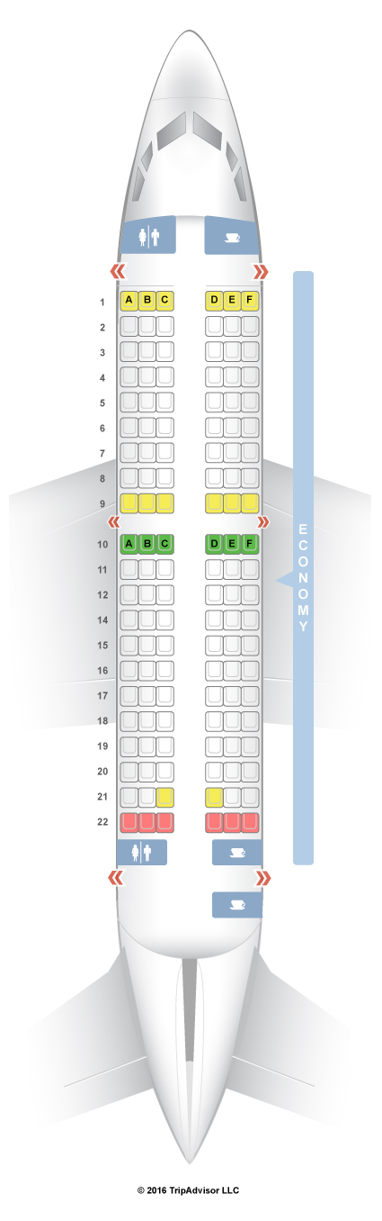 Tunisair flies its Boeing 737-600 aircraft on short- and mid-haul routes. This aircraft is configured in a one-class configuration with 126 Economy Class seats.